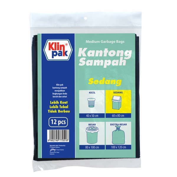 Klin Pak Kantong Sampah Sedang 60 x 80 cmmerupakan kantong sampah berbahan plastik yang didesain simple dan ergonomic. Kantong sampah ini kuat dan tidak mudah sobek dapat digunakan untuk menampung sampah sehingga memudahkan Anda saat membuang sampah. Ideal digunakan untuk kebutuah rumah tangga, kantor, dan retau