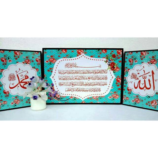 wall decor keren dengan desain Lafadz Allah Dan Muhammad, lengkap dengan ayat kursi