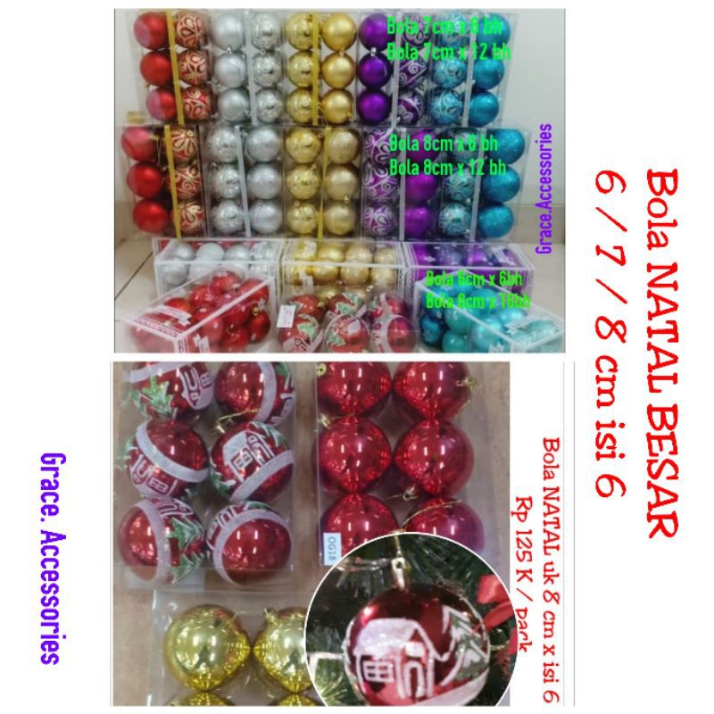 Bola Natal 6 cm Mix (Kilap, Dof, Glitter) isi 6 Rp 50.000 - 75.000