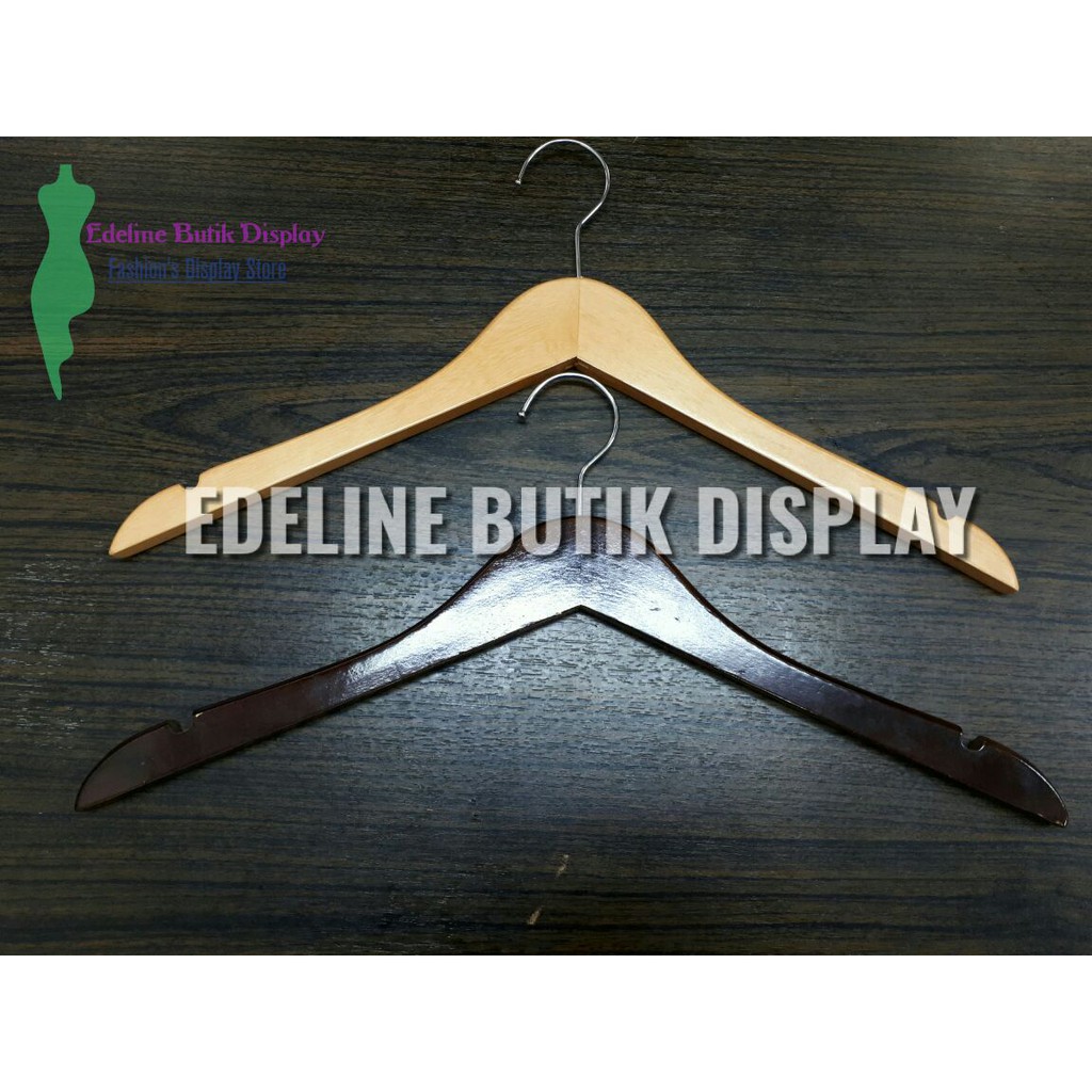 Hanger kayu harga ready stock warna natural dan coklat tua, harga per lusin. Warna tidak bisa campur
