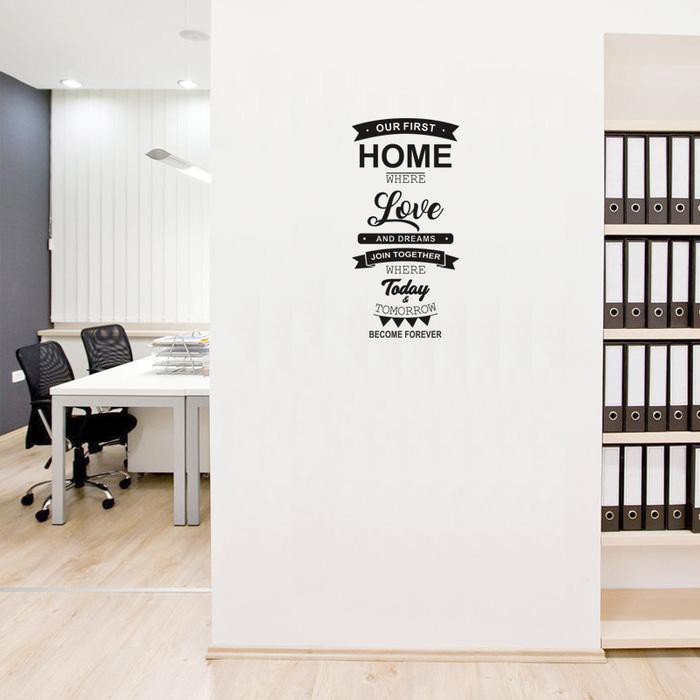Produsen Perlengkapan di Kabupaten Indragiri Hilir Wall Stiker Dinding Kaca Quotes Our First Home Rumah Kamar Sticker Cutting dari 0 Kota Tangerang Selatan