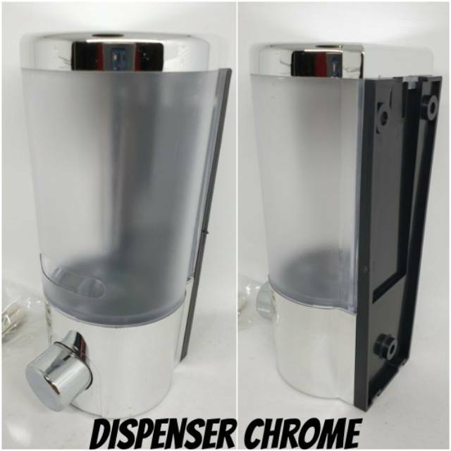 dispenser sabun cair mini chrome kapasitas 300ml. sudah dilengkapi baut dan fiser pemasa