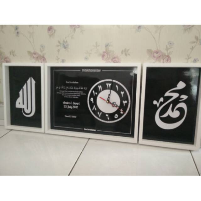 Name: Hiasan Jam Dinding Kaligrafi Set Doa Pernikahan Dan Allah Muhammad Black White